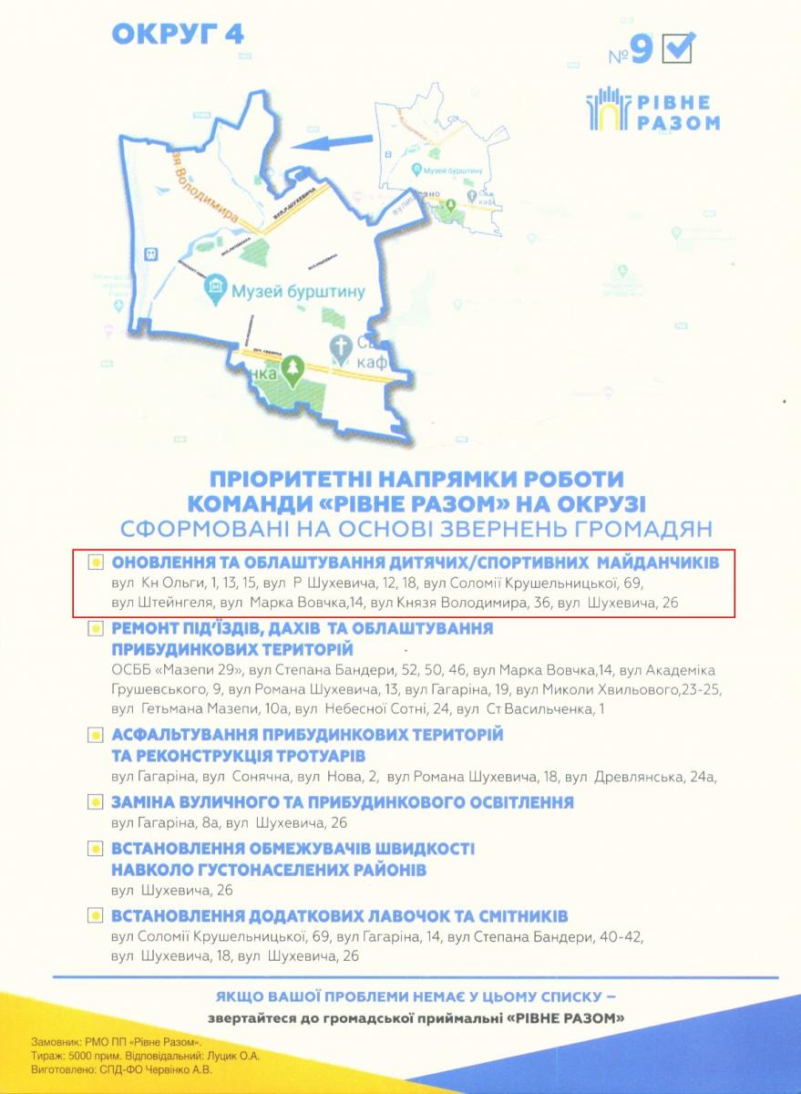 Пріоритетні напрямки роботи команди «Рівне разом» на окрузі 4, сформовані на основі звернень громадян:
